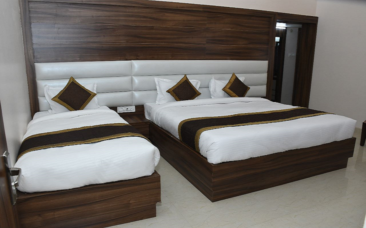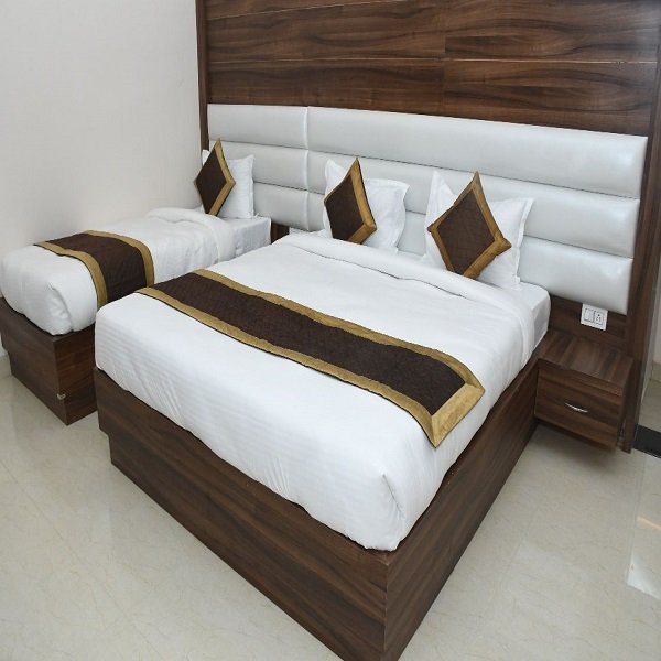 A Super deluxe room at The Golden Villa hotel in Prayagraj is one of the accommodation options available.
